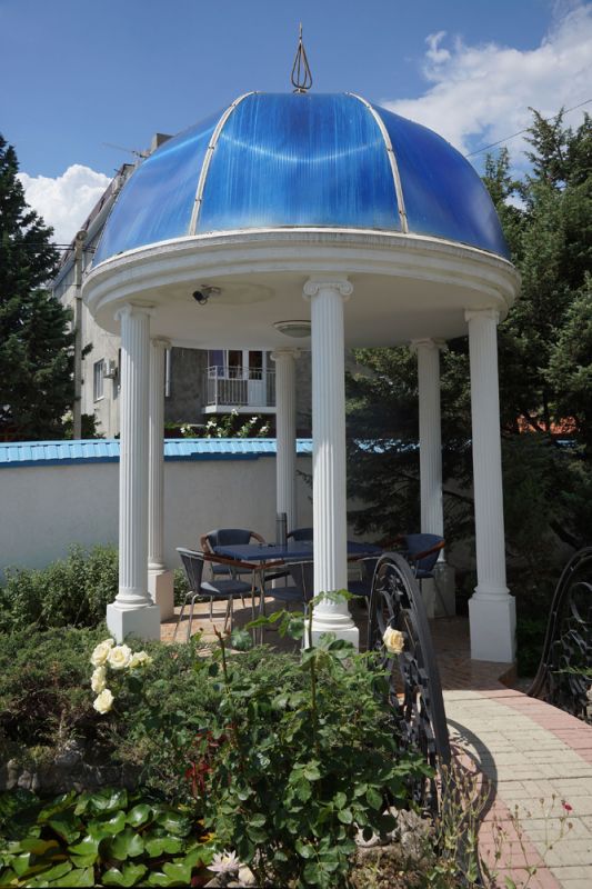 Территория мини-отеля защищена от посторонних и надежно охраняется. Она состоит из одного 5-этажного здания, кафе и открытого бассейна. На выбор гостей – двух- и трехместные номера со всеми современными удобствами и необходимой бытовой техникой. Гости мини-отеля могут играть в бильярд, посещать кафе-бар, отдыхать в беседках, пользоваться крытым бассейном, джакузи и сауной.