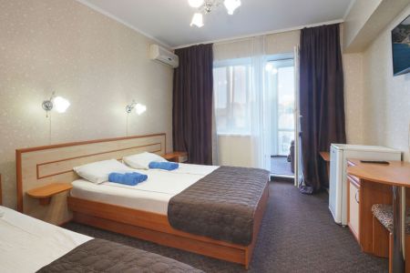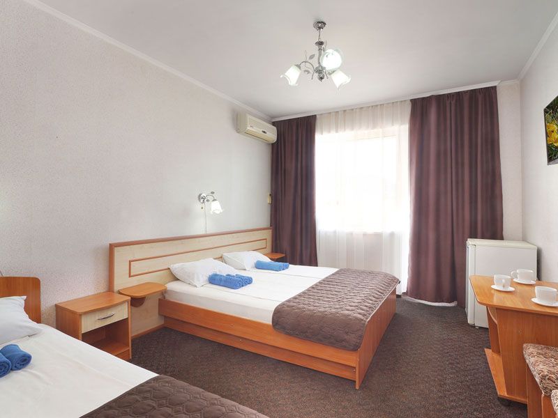 Разнообразить программу отдыха позволяет близость ресторанов, аттракционов, аквапарка, сувенирного рынка. До моря и городского песчано-галечного пляжа всего 800 м.